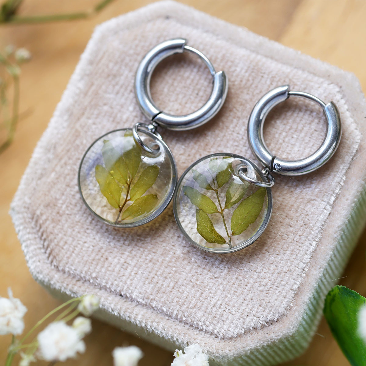 Each pair of earrings is a unique composition of real dried flowers, delicately embedded in transparent epoxy resin. It’s a subtle fusion of nature and modern design, turning the earrings into more than just an accessory – they become a reflection of your style and sensitivity.