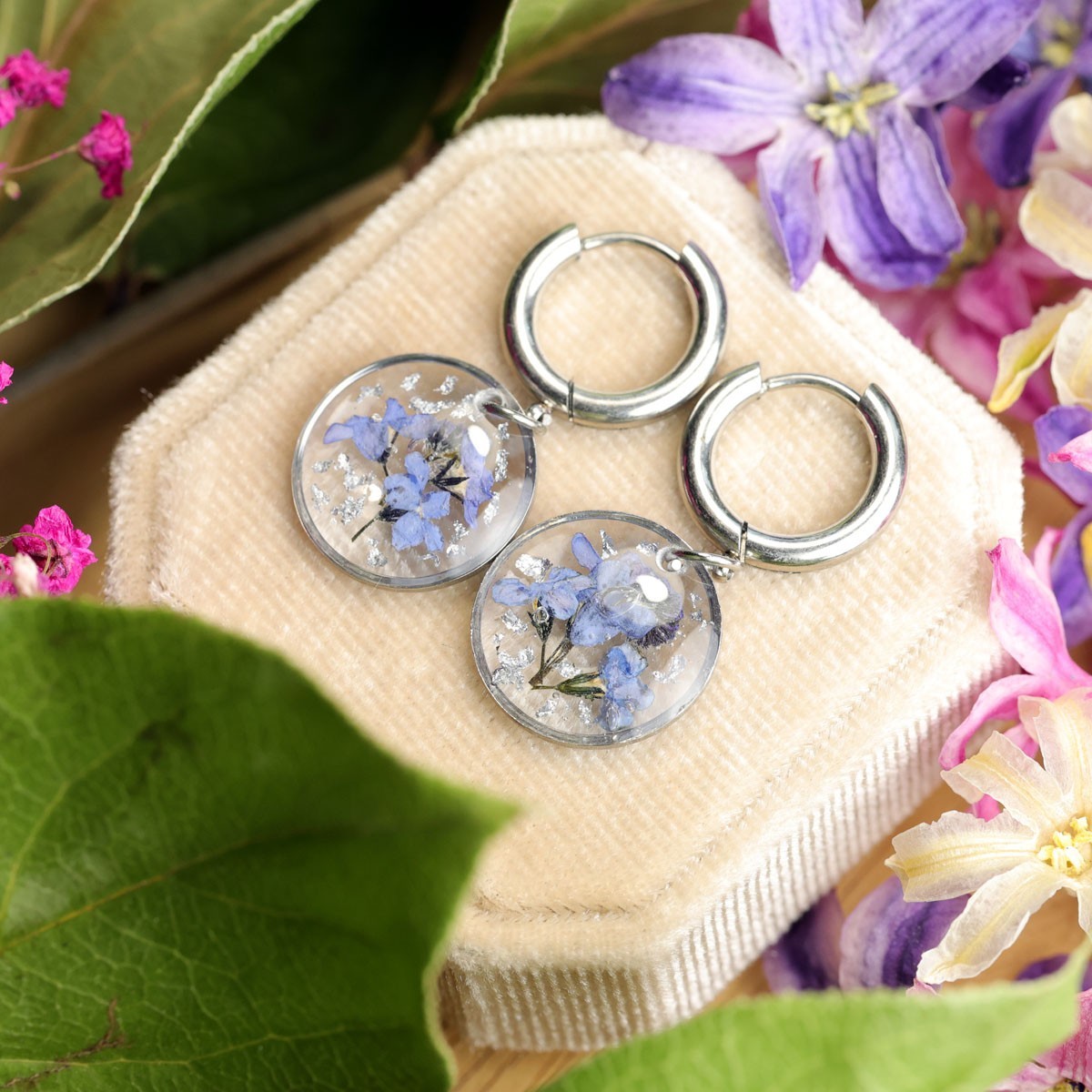 Each pair of earrings is a unique composition of real dried flowers, delicately embedded in transparent epoxy resin. It’s a subtle fusion of nature and modern design, turning the earrings into more than just an accessory – they become a reflection of your style and sensitivity.
