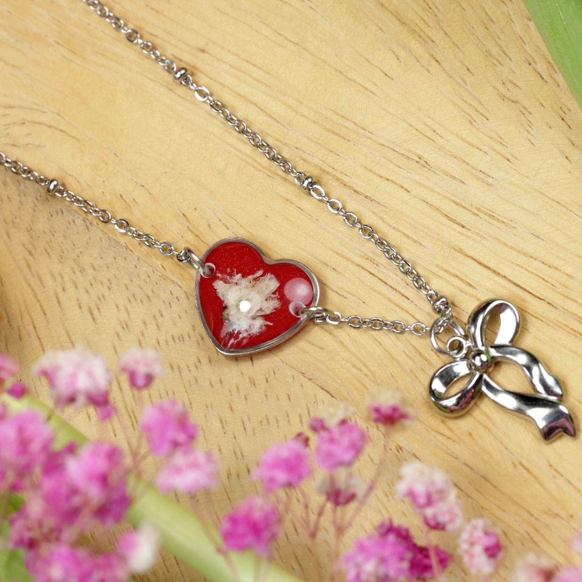 Miłość to emocje, które chcemy zachować na dłużej, dlatego ta kolekcja powstała jako wyjątkowa biżuteria na Walentynki, łącząca naturę, symbolikę i kunszt rękodzieła. Każdy element to ręcznie robiona biżuteria z prawdziwych kwiatów, starannie suszonych i zatopionych w żywicy, dzięki czemu zachowują swoje piękno na lata. To niepowtarzalna biżuteria handmade, która staje się osobistą pamiątką i idealnym wyborem dla osób szukających prezentu walentynkowego dla niej.