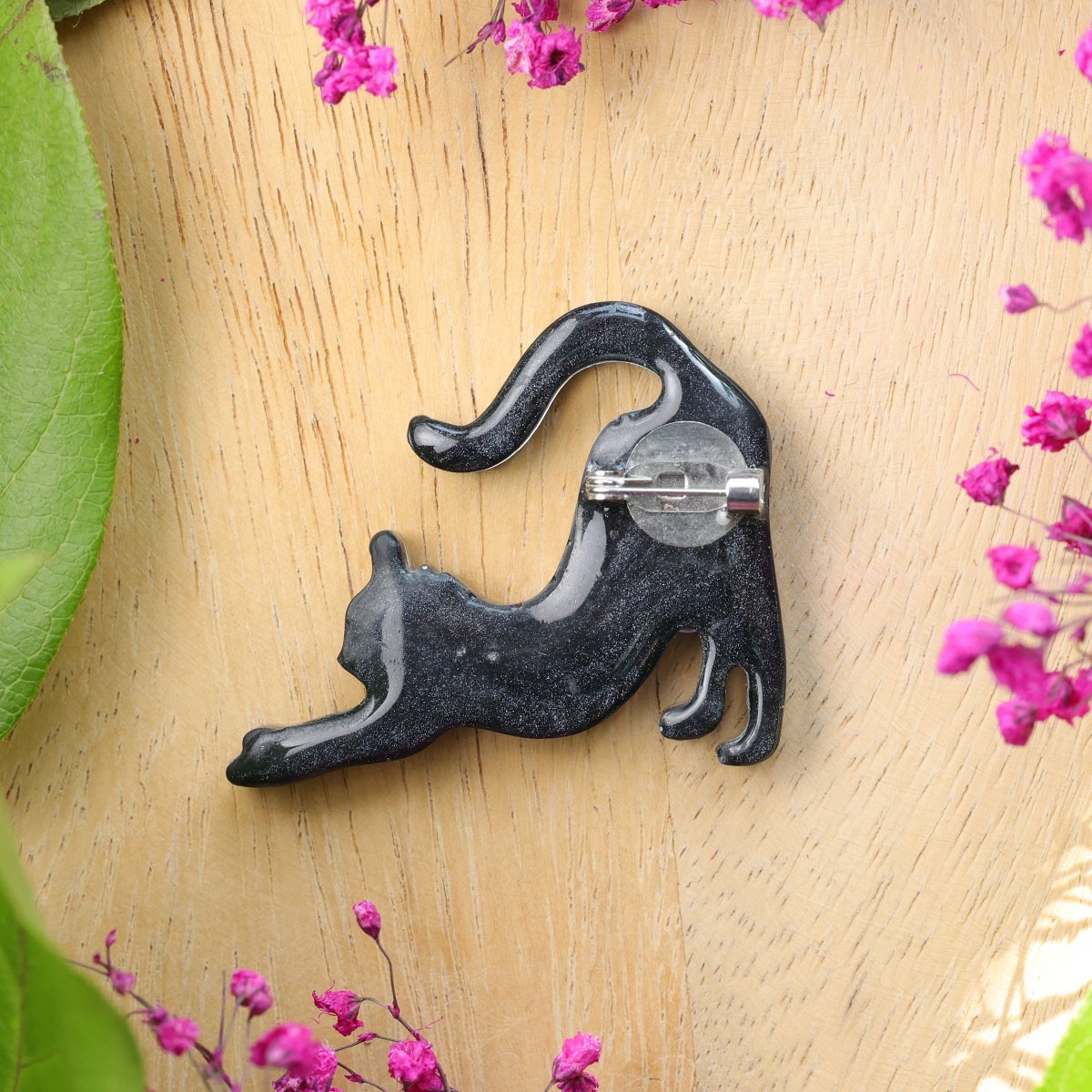 Ta wyjątkowa broszka to połączenie miłości do natury i kociej słodkości. Wykonana ręcznie z dbałością o każdy detal, przedstawia kontur kota. W jej wnętrzu zatopione zostały prawdziwe, suszone kwiaty, które nadają każdemu egzemplarzowi niepowtarzalny charakter.